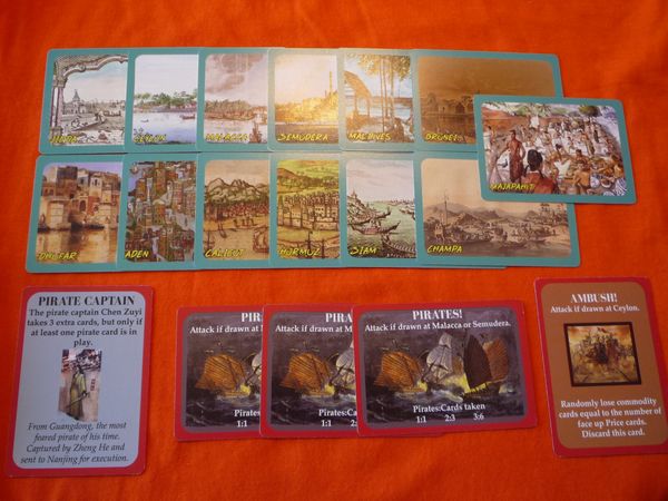 For a western seas strategy, the port of Jidda plays an important role as it is both difficult to reach and offers distinct Commodities. In the east, it's difficult, but good to visit Brunei to receive the bonus trade cards that make subsequent auctions easier to win. The goods at Brunei and Champa, and Wood in general, are good to collect in this part of the sea.