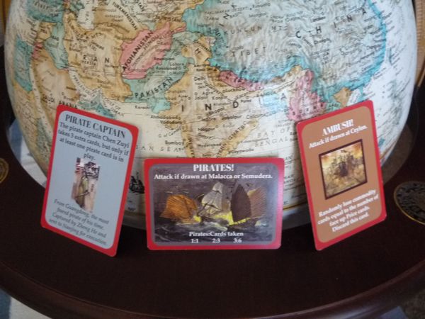 Probably obviously, keep the possibility of Ambush and Pirates in mind as you travel about. There are times when visiting their locations is safe, or relatively so, but other times where you could end up undoing all your hard work. On the other hand, if the game hasn't gone the way you like so far, perhaps an early attack could be helpful as a way of reducing opposition holdings so that you can achieve more monopolies.