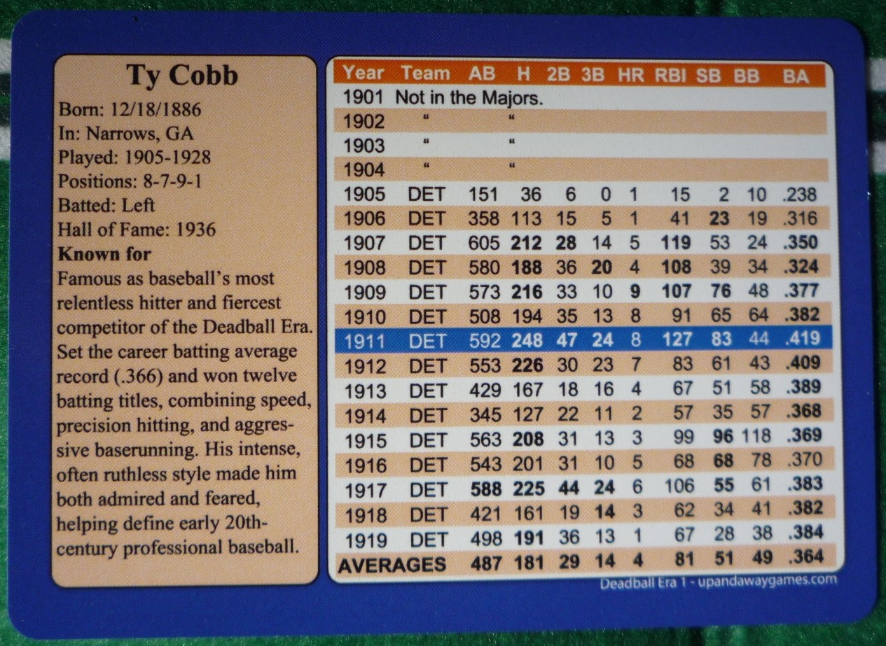 Baseball fans know that some of the sport's best stories come from the fabled Deadball Era: 1901-1919. These were the days of Ty Cobb, Tris Speaker, Cy Young and Walter Johnson. Of playing small ball, the stolen base and hitting over .400. Of McGraw and his mighty Giants. Of Tinker to Evers to Chance and the Merkle "bonehead" play. Of the "The Big Train" Walter Johnson who pitched with a heart of gold, of the genteel Christy Mathewson cut down before this time and an up and coming young lefthander name of Babe Ruth.