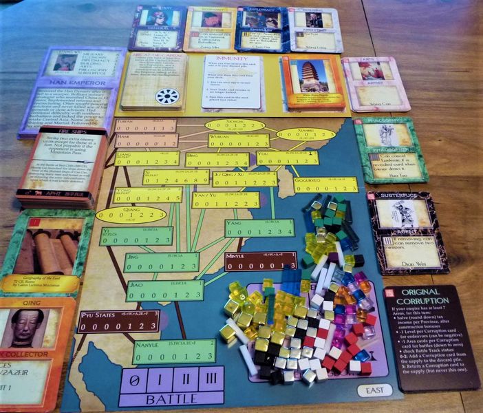 The Chinese emperor is even more difficult to manage. Even drafting a minister may require spending Influence.