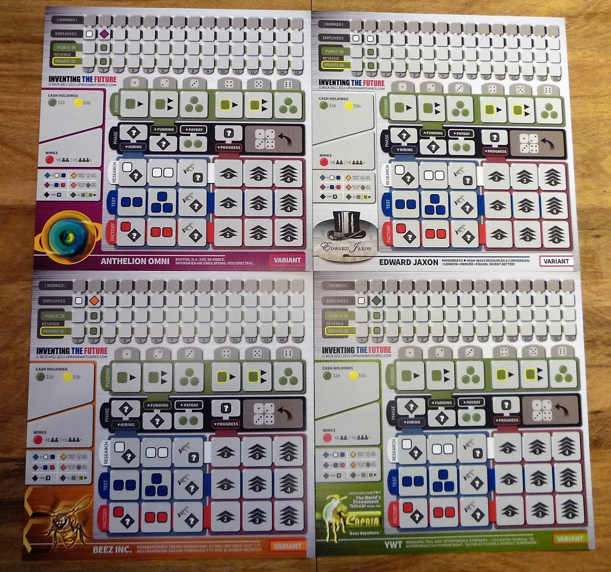 The clever bit is that as in Puerto Rico, the phases themselves are not set, but actually determined by the players. Each phase type is determined via the exact same process as the above. This means that players only discover as they go along the types of phases that will resolve on the current turn, and whether they will occur at all. You must manage the risk of not knowing in advance what will happen and what will not, but you have some chance to influence the outcome.